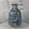 A rounded glass vase with a narrow flared neck and a black and white speckle pattern across the entire surface, giving it an organic volcanic texture.