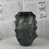 A smoke grey glass vase with an organic crinkled texture and spiked ridges along the body, giving it a raw, sculptural presence on any surface.