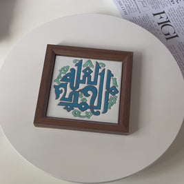 Gracefully crafted with traditional Arabic calligraphy, the Alhamdulillah Calligraphy Frame beautifully displays the sacred phrase “الحمد لله”All praise is due to Allah. Each piece reflects timeless faith through its detailed ceramic work and intricate turquoise embellishments, framed elegantly in warm walnut wood. A perfect addition to bring serenity and gratitude into any home.