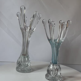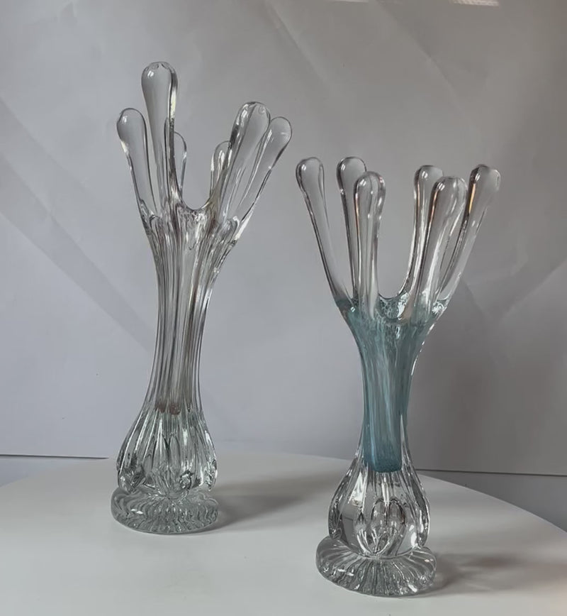 A stunning fusion of artistry and elegance, the Aqua Bloom Glass Vase captivates with its fluid, handblown form and subtle gradient from clear crystal to ocean blue. Its organic, petal-like rim mimics the gentle opening of a flower, making it a statement piece even without blooms.