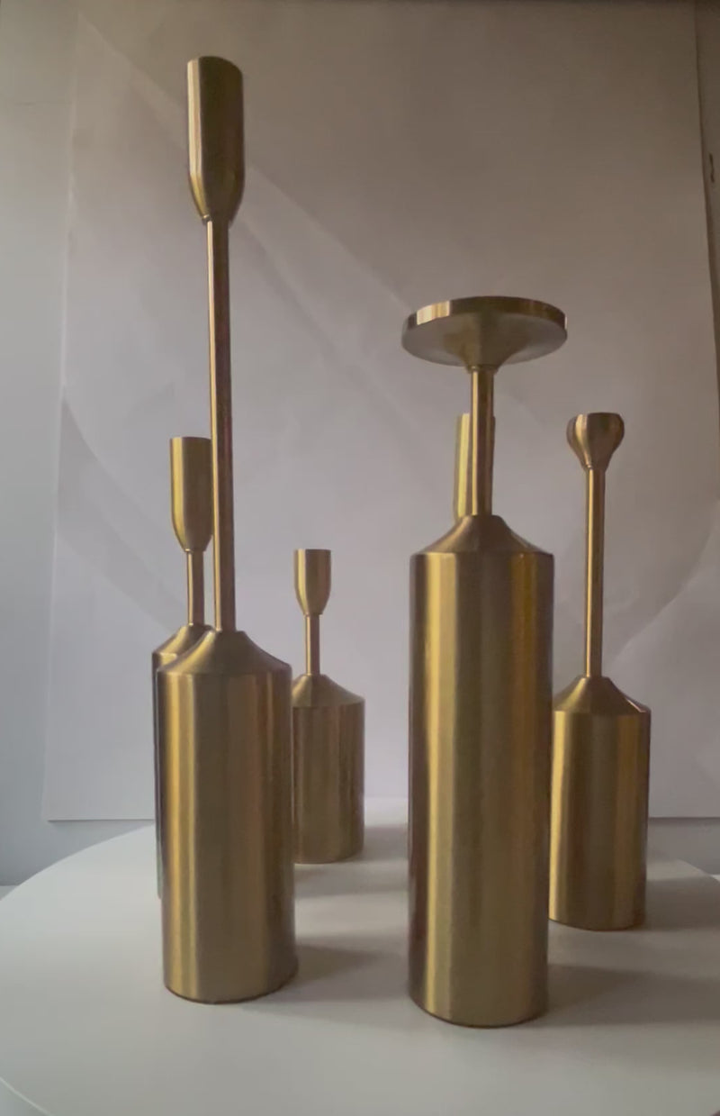 A striking set of six brass chandeliers in varying heights, designed to bring depth and elegance to any modern interior. Each piece features a sleek, geometric silhouette with a brushed gold finish that beautifully catches natural light. Perfect for creating a dramatic focal point over dining tables, in living rooms, or as statement lighting in entryways.