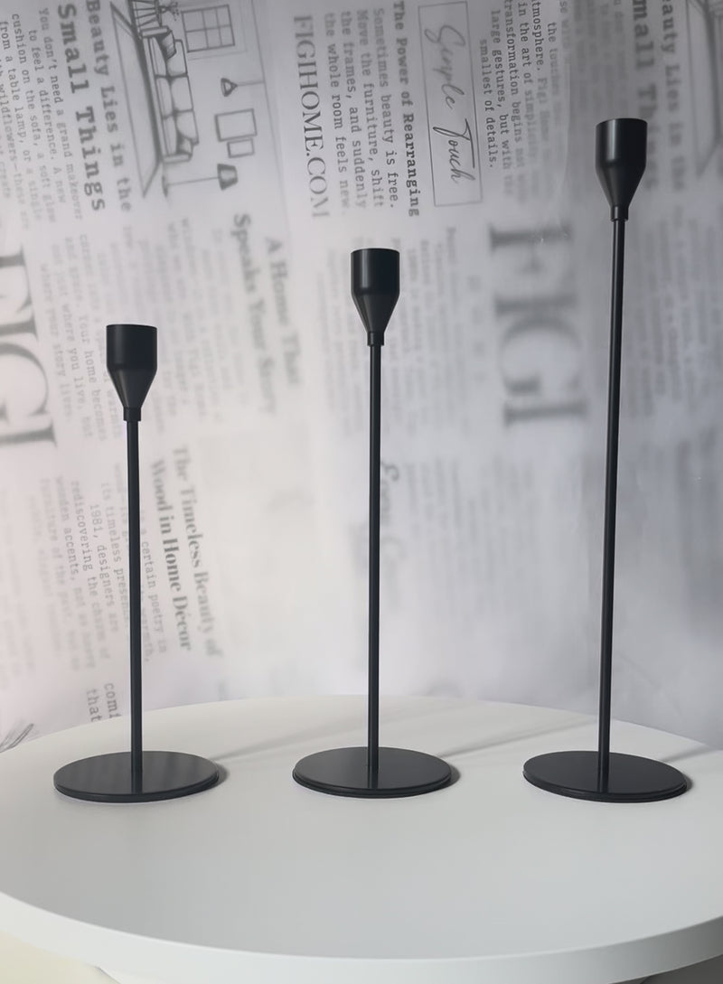 An elegant candle holder set  designed to bring sophistication and warmth to any space. With its slender stems and flared tops, each piece creates a refined silhouette, perfect for modern dining tables, consoles, or living room accents.