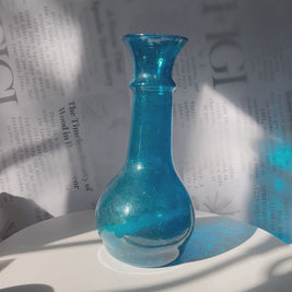 The Azure Harmony Vase embodies elegance through simplicity — a tall, handblown glass piece that reflects artisanal craftsmanship in every curve. Its deep ocean-blue hue and naturally formed air bubbles create a timeless, organic texture that catches and refracts light beautifully.