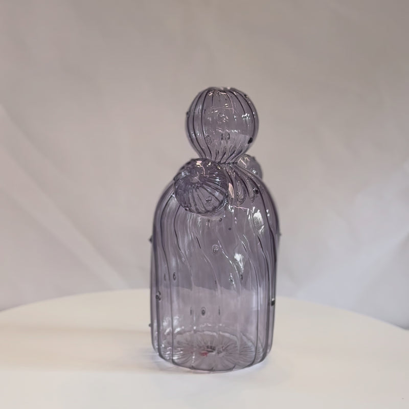 Add a touch of charm to your space with this unique vase, handmade from colored Pyrex glass. Each piece is carefully crafted, making it one of a kind.