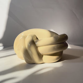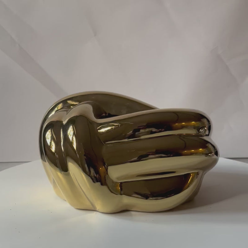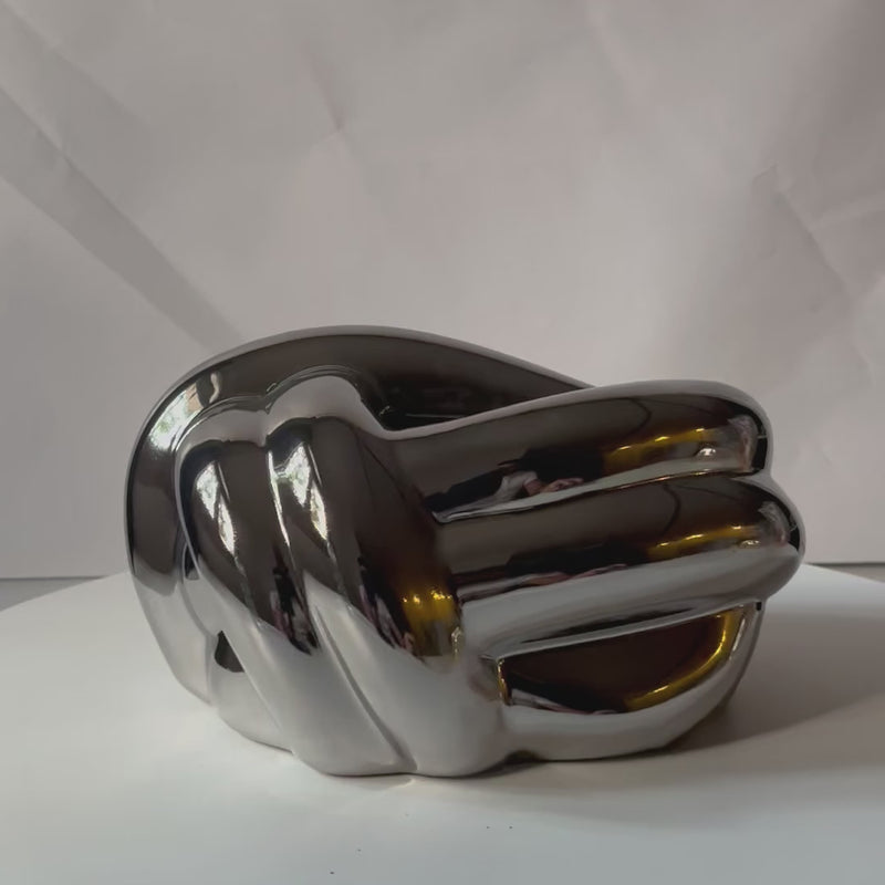 A modern tissue box holder crafted with a polished chrome finish and a sculptural knot-inspired design. Its reflective surface and unique form bring a bold, contemporary touch to any living room or office, transforming a daily essential into a decorative statement piece.