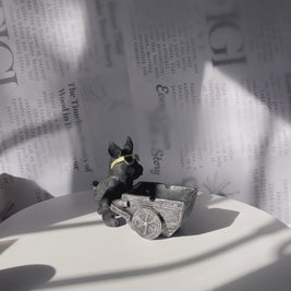 Bring personality and charm to your space with the Cool Pup Cart Holder — a fun, versatile décor piece featuring a stylish black dog with gold sunglasses pushing a rustic cart. Whether used as a small planter, trinket tray, or quirky statement accessory, this piece effortlessly blends humor and elegance, making it a standout addition to any room.