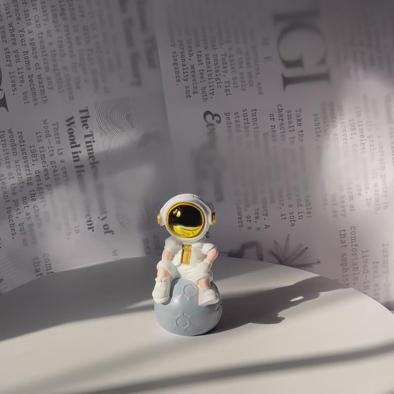 With its smooth matte finish, golden visor, and soft grey moon base, it adds a calming and modern charm to any space. Whether placed on a desk, shelf, or bedside table, it serves as a reminder to pause, dream, and reach beyond the ordinary.