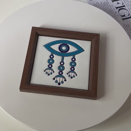 Drawing from Middle Eastern symbolism, the Eye of Harmony Frame embodies protection, balance, and tranquility. The detailed eye motif, hand-glazed in serene blue. Framed in deep walnut wood, it fuses cultural heritage with a minimalist modern touch — a subtle yet meaningful statement piece.