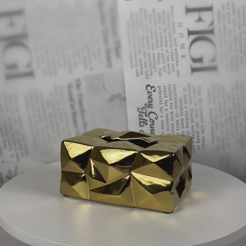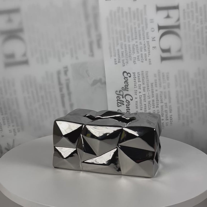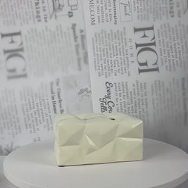 A geometric ceramic tissue box cover with an origami-inspired faceted surface — turning an everyday essential into a refined decorative object. The angular diamond-cut exterior catches light beautifully and adds instant texture to any bathroom vanity, bedside table, or living room console. Minimal, elegant, and surprisingly impactful for its size.