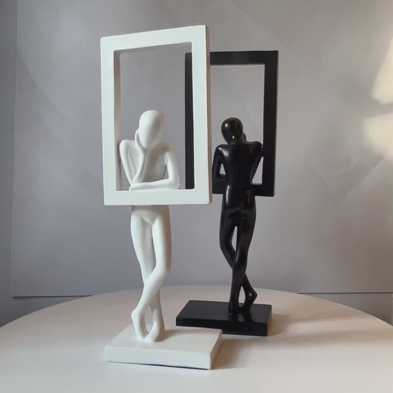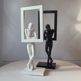 A poetic representation of calm thought and artistic depth, the Framed Serenity Sculpture captures a minimalist human figure leaning within a geometric frame — symbolizing reflection, openness, and balance. Its pure white finish adds an elegant, gallery-like aesthetic to any modern space.