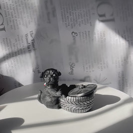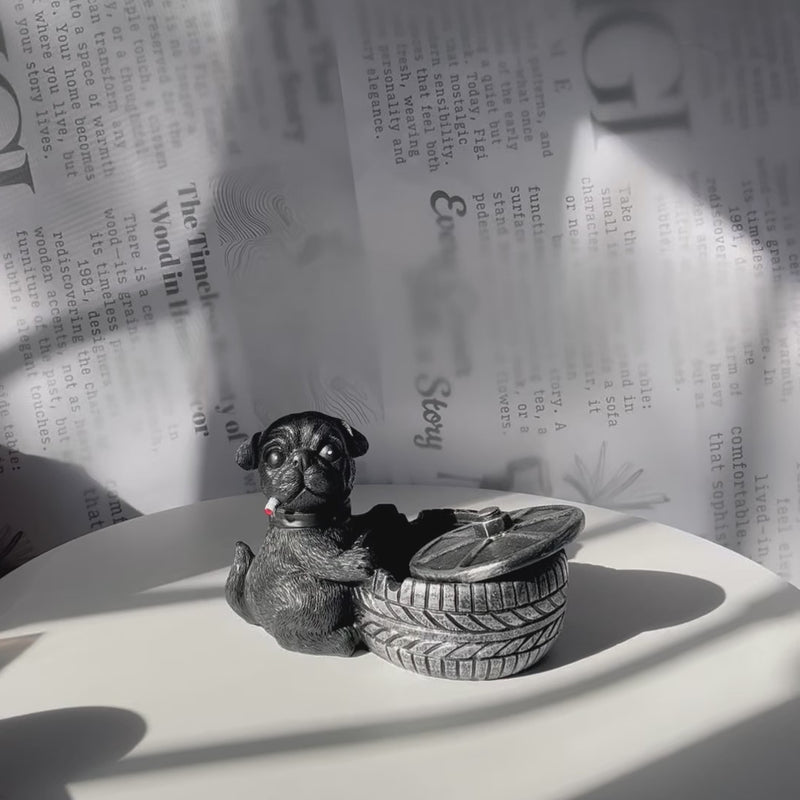 Add a touch of attitude and charm to your space with the Gentle Pup Ashtray Holder — a bold décor piece featuring a detailed dog figurine resting beside a tire-inspired ashtray. Whether on your desk, side table, or shelf, it captures the perfect mix of rustic edge and playful personality, bringing character to any modern interior.