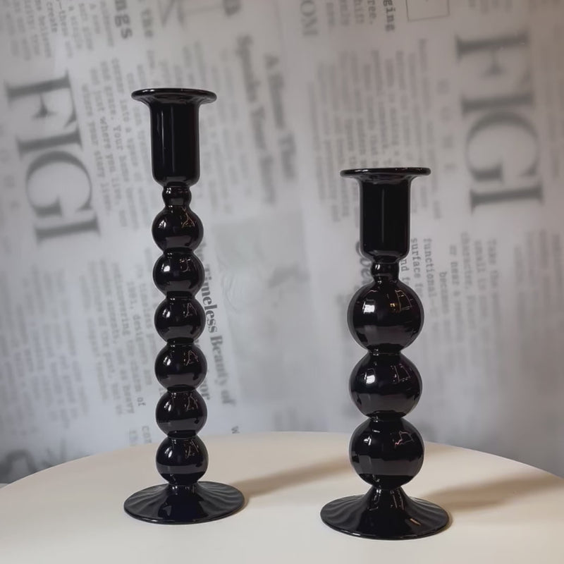 Glossy Noir Bubble Candle Holder Set