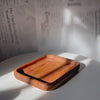 A compact teak wood tray shaped with soft rounded corners and a deep, warm grain that glows beautifully under natural light. Thoughtfully carved and smooth to the touch, this piece balances simplicity and craftsmanship, making it perfect for everyday organization or subtle tabletop styling.