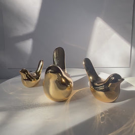 A graceful trio of bird sculptures crafted with a smooth, reflective finish that radiates warmth and elegance. Each piece is designed with gentle curves and minimalist charm, making them a perfect accent for shelves, side tables, or dining consoles. Displayed together, they symbolize harmony and togetherness while adding a luxurious touch to any space.
