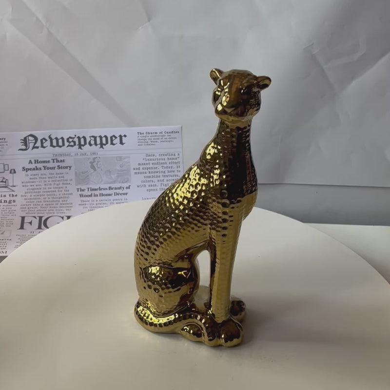 A sleek and powerful decorative piece that captures the elegance of the panther in a minimalist, contemporary form. Its reflective golden finish and textured surface bring a sense of luxury and bold character to any interior space. Perfect for adding a touch of modern glamour to shelves, consoles, or office décor.