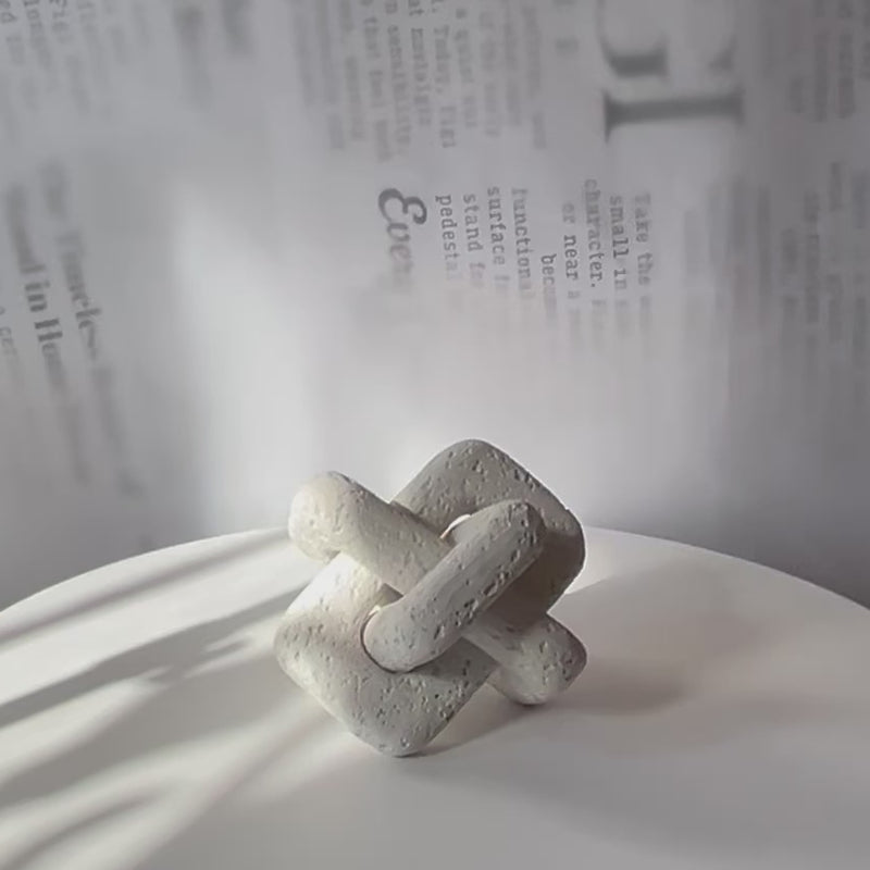 The Gypsum Knot Sculpture is a symbol of harmony and balance, designed to bring an artistic touch to modern interiors. Crafted from premium gypsum, its interlocking form and textured surface reflect minimalist sophistication and handcrafted artistry. The matte stone finish adds a natural feel, making it a versatile accent for a variety of decor styles.