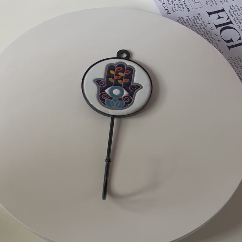 The Hamsa Wall Hook blends spiritual symbolism with refined design. Representing protection, blessings, and harmony, this handcrafted ceramic piece showcases the traditional Hamsa Hand with an embedded evil eye motif at its center — a timeless emblem believed to ward off negativity.