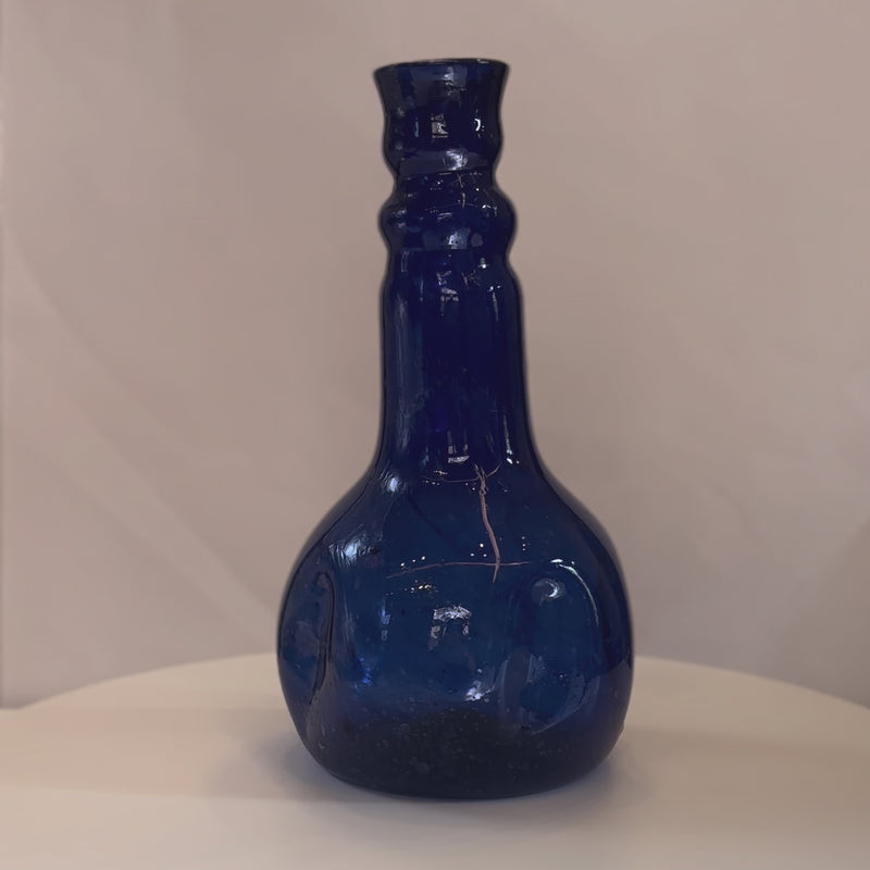 Crafted by hand from deep blue glass, this vase is made especially for blue color lovers. Its elegant shape and rich tone make it a beautiful decorative accent.