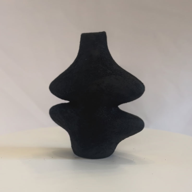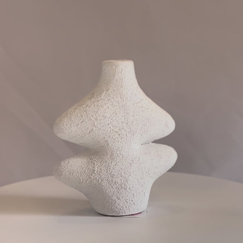 This handmade pottery vase is crafted with a sculptural and modern shape, perfect for white color lovers. A beautiful accent that adds artistic character to any room.