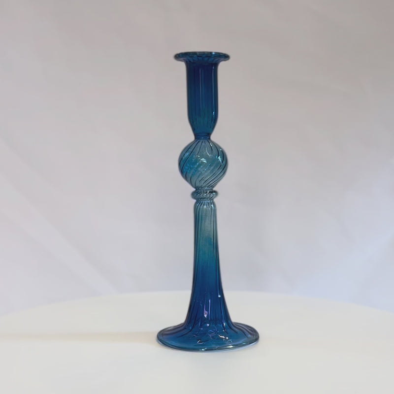 A sleek and modern candle holder, handmade from Pyrex glass. it comes in two elegant shades: black and rich blue. The soft, curved lines give it a minimal and contemporary feel—perfect for any stylish space.