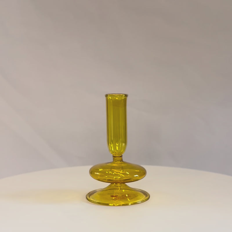 A modern and minimal candle holder, handmade from glass. Designed with a fresh yellow tone to add a bold and cheerful touch to your space.