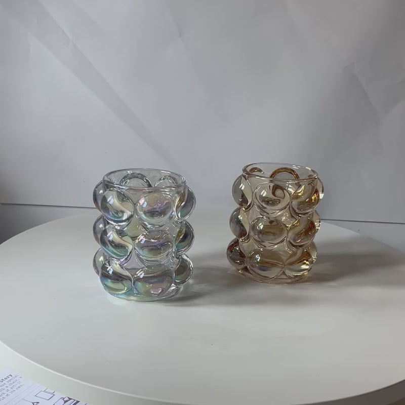 Playful yet elegant, the Luna Bubble Glass Holder adds a soft modern glow to any space. Its iridescent finish and bubble-textured surface create a dreamy light reflection, perfect for candles, flowers, or standalone styling.