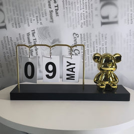 This stylish desk calendar adds a playful yet elegant touch to any workspace. Designed with a matte black base and a sleek gold metal frame, it features flip-style date cards that make changing the day and month quick and effortless. The standout element is the glossy gold bear figurine—an eye-catching decorative accent that brings character and charm to your desk, shelf, or office.