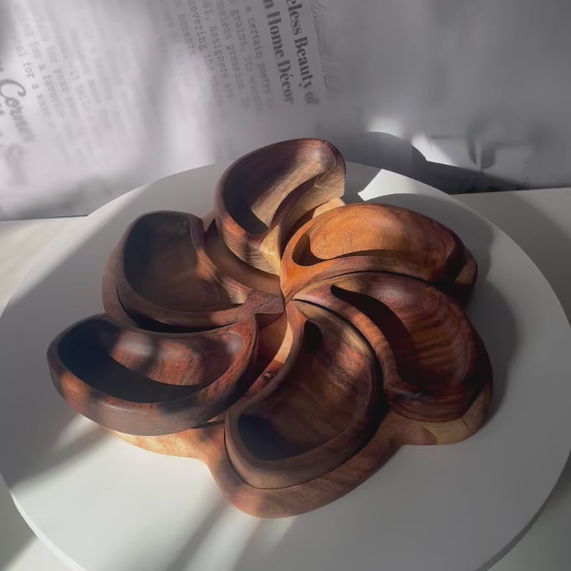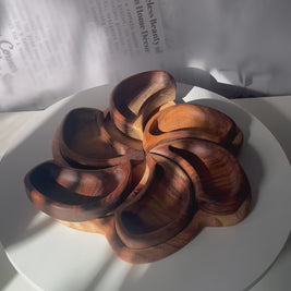 This beautifully crafted snack tray adds a warm, organic touch to any living space. Made from natural solid wood, each petal-shaped section highlights the rich grain and smooth texture that make every piece feel unique and artisanal. Its sculpted, flower-like form makes it both decorative and highly functional.