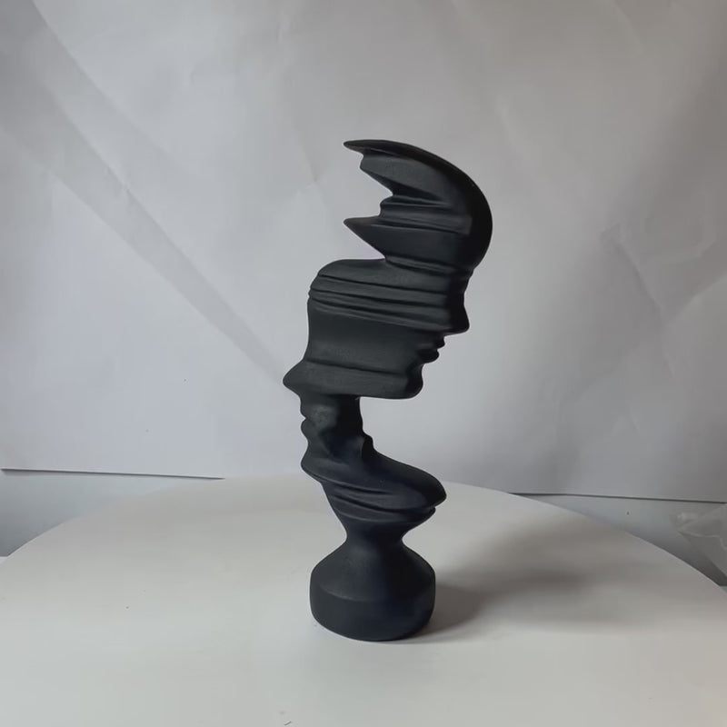Bold and sculptural, the Noir Abstraction Sculpture redefines modern art through motion and form. Its fluid lines and matte black texture create a dramatic visual statement, symbolizing thought, strength, and individuality.