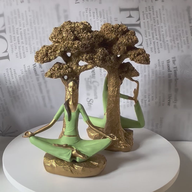 The Serenity Tree Figures capture a sense of balance and inner calm, designed to bring warmth and harmony to any modern space. Each piece features a figure seated gracefully beside a sculpted golden tree — a symbol of growth, stillness, and natural beauty. The soft green tones and gold details blend effortlessly with any interior, adding a touch of artistic peace to your home.