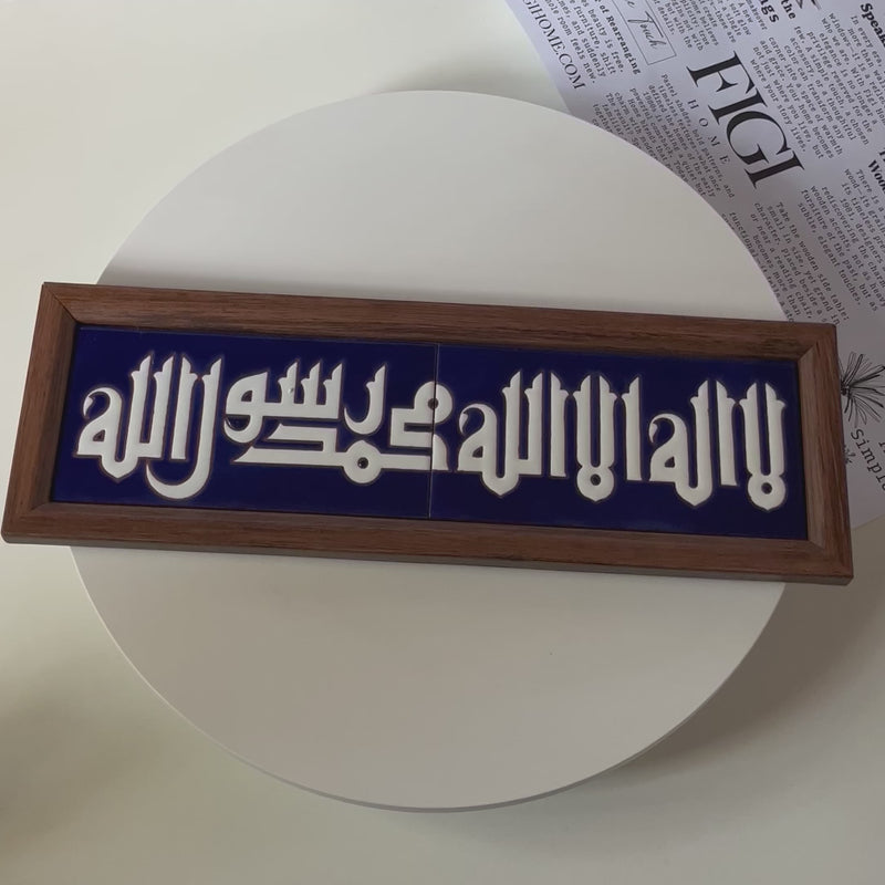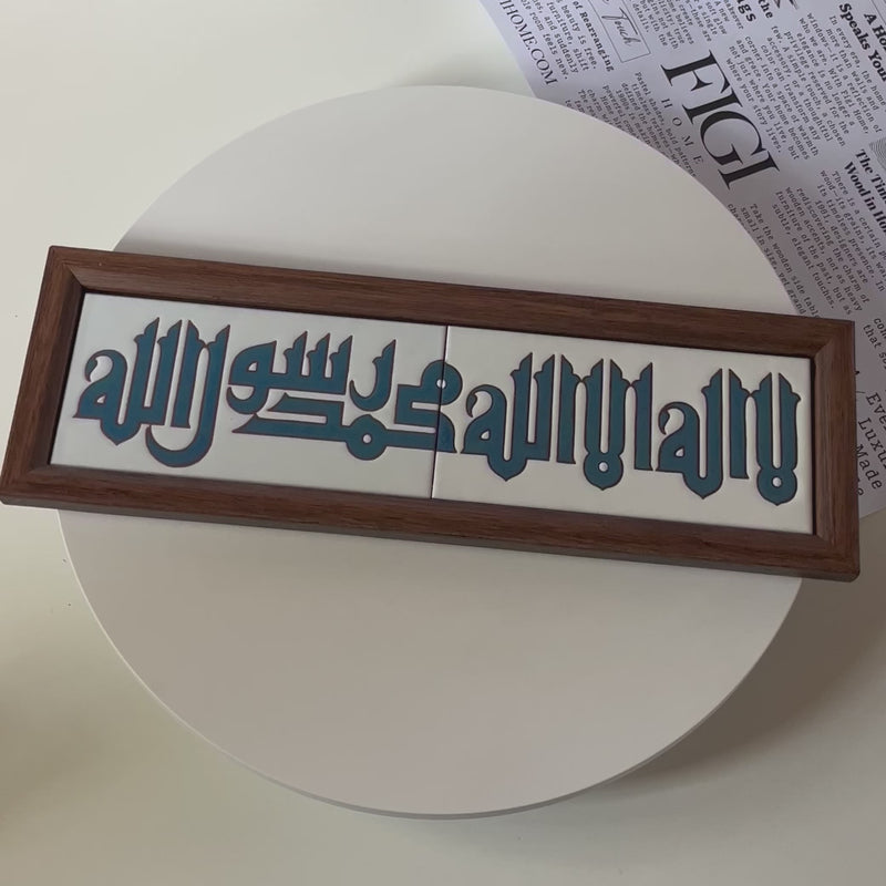 A refined expression of spirituality and art, the Thuluth Faith Frame features the Shahada crafted in elegant Thuluth calligraphy — one of the most timeless Arabic scripts. Hand-glazed ceramic tiles meet a rich walnut wood frame, creating a statement piece that blends faith and sophistication effortlessly.