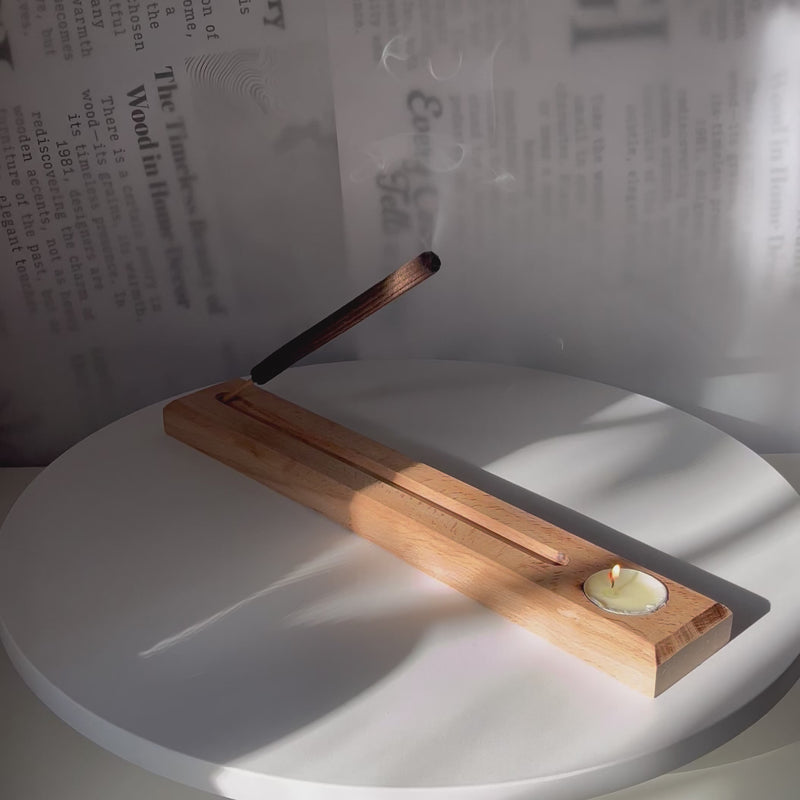Design / Pattern: Linear incense groove with integrated tea-light holder