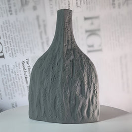The Textured Charcoal Vase combines natural inspiration with modern artistry. Its rugged surface mimics organic rock formations, creating a raw yet elegant look that adds depth and sophistication to any interior.