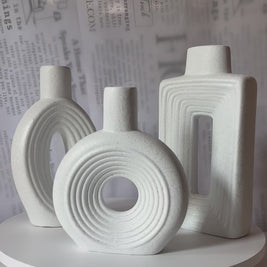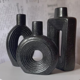 The Textured Minimal Vase Set blends contemporary design with sculptural balance. Featuring three distinct geometric forms, each vase showcases a unique silhouette that adds character and depth to any modern interior. The subtle speckled finish creates a refined texture, making them striking both as a trio or as individual statement pieces.