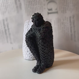 The Textured Mosaic Human Sculpture captures emotion through contemporary design and abstract form. Crafted from high-quality resin, this piece features a seated human figure constructed from intricate mosaic-like blocks, symbolizing reflection and inner thought. Its detailed surface texture gives it depth and a unique tactile quality that stands out in any modern space *each 2 may be used as a book stand*.