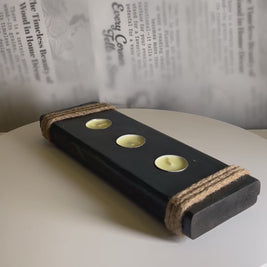 This long wooden candle holder brings a warm, rustic touch to any room. Designed with three tealight slots and wrapped with natural rope on both ends, it blends earthy textures with a handcrafted feel. Its elongated shape makes it perfect for centerpieces, coffee tables, TV units, or bedside styling.