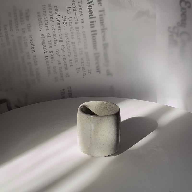 A minimalist glazed clay pot with a soft speckled finish that brings calm, earthy character to any surface. Its simple cylindrical form and neutral tone make it perfect for modern interiors, styled shelves, or as a subtle accent piece.