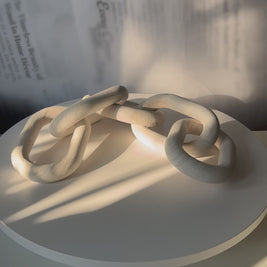 Its interlocked links symbolize connection and continuity — making it not only a design accent but also a meaningful statement piece. Each link is smoothly carved and slightly distressed for an elegant, organic look that suits both minimal and rustic interiors.