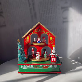The Wooden Christmas House Music Box captures the heart of festive nostalgia through its intricate, handcrafted design. Shaped like a cozy red holiday cottage, it features miniature Santas, snowmen, and toys placed across two rotating tiers — creating a charming scene that comes to life as the music plays.