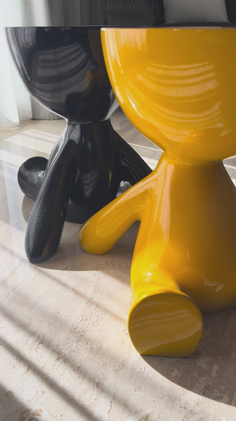 A bold sculptural side table designed to function as both furniture and art. Featuring a glossy yellow finish and an organic pedestal base, this piece brings a strong contemporary presence while maintaining a refined, modern aesthetic.